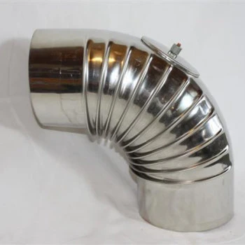 Rauchrohr, bestehend aus einem 90° Bogen mit einer Materialstärke von 0,6 mm aus Edelstahl sowie einer Reinigungsöffnung.