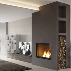 Mit der HWAM Serie 3700 haben die Designer einen schlanken Kaminofen geschaffen, dessen Design an geradlinige Säulen erinnert.